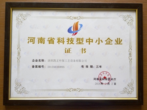 近日,洛陽(yáng)凱正環(huán)保工藝設(shè)備有限公司榮獲“河南省科技中小企業(yè)”“ 科技創(chuàng)新先進(jìn)企業(yè)”“ 立信示范單位”。